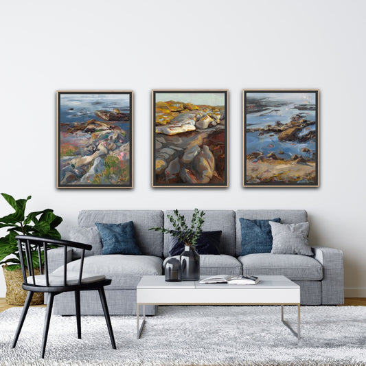 The subject matter of these works comes from Shaune's recent meditations in all things rock related, from coastal rockeries, shoreline sweeps, or even a handful of semi-precious stones. This ongoing series arose from the simple enjoyment and skin-tingling pleasure of lying on a sun-baked rock as the coolness of night unfolds, of the great anticipation of tentatively stepping over sharp-edged rocks in the hope of discovering tidal treasures.