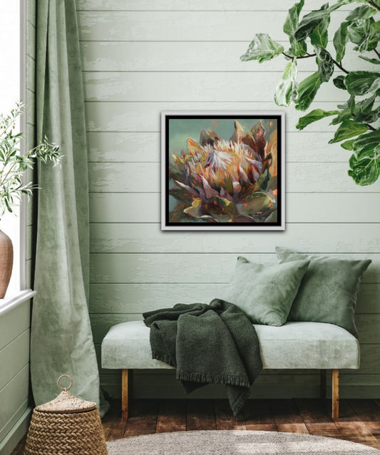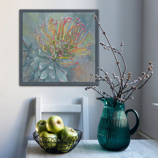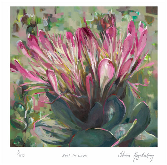 This specialised artist print is a reproduction of one of Shaune's original oil paintings of South Africa’s indigenous flora. The original sold painting is much larger in scale (usually around 100 x 100 cm).