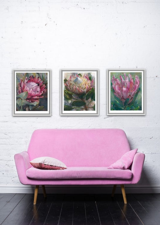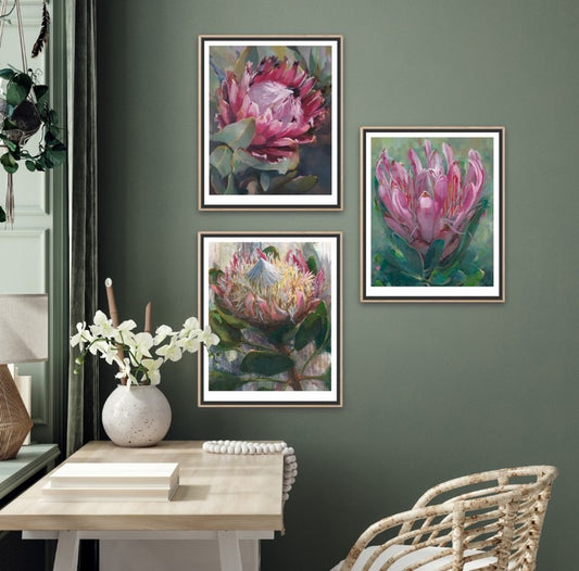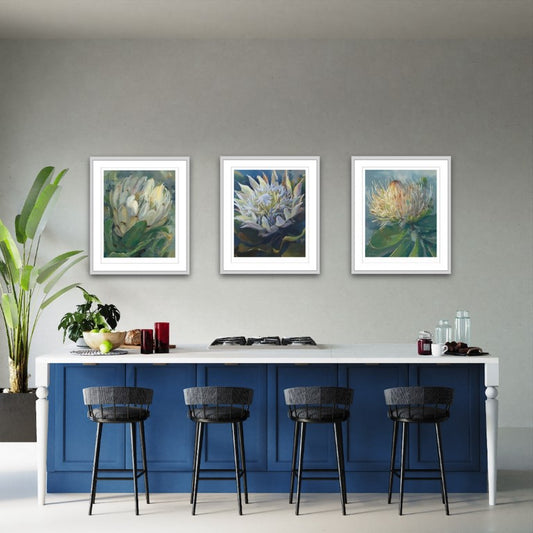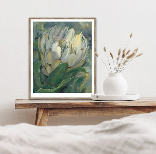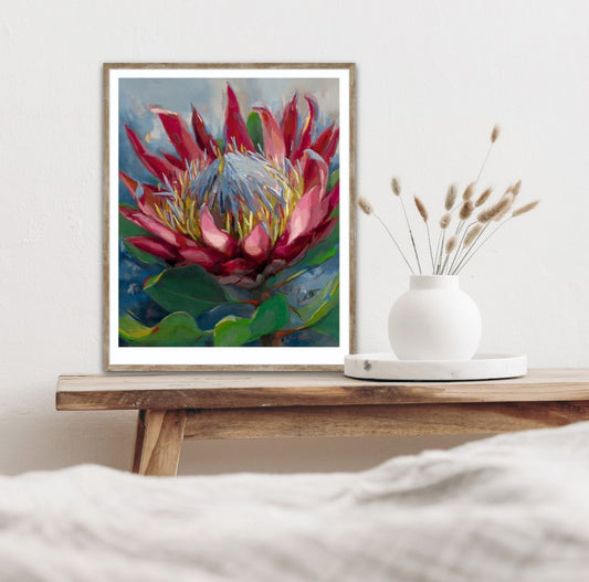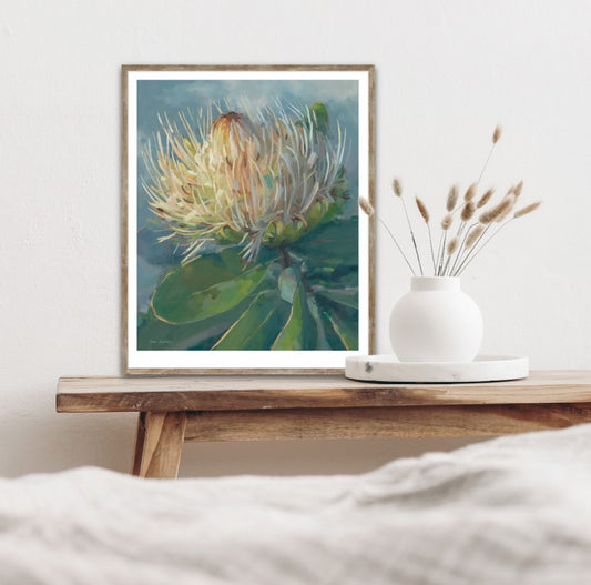 This specialised artist print is a reproduction of an original oil painting of South Africa’s indigenous flora. The original sold painting is much larger in scale. Each print is colour-matched to the original artwork, printed with archival inks to fine art standards.