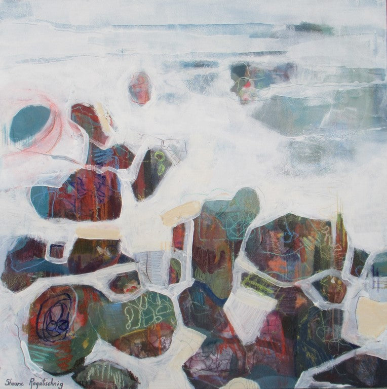Mixed water-based media on panel and framed in box kiaat, 2022