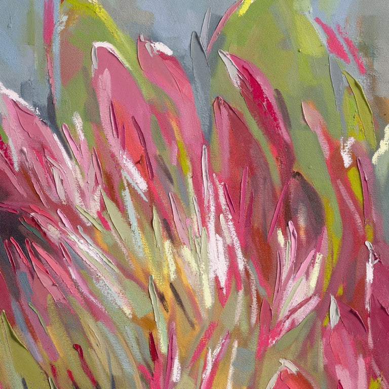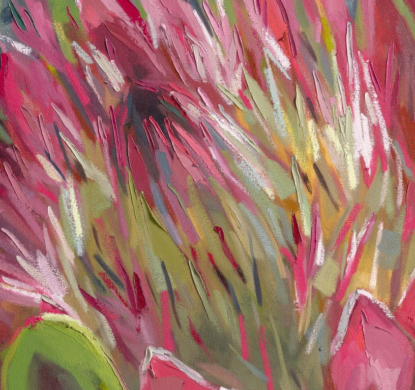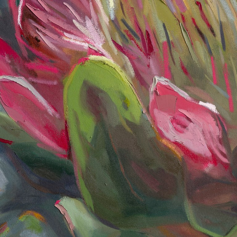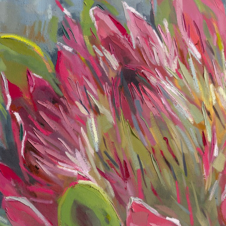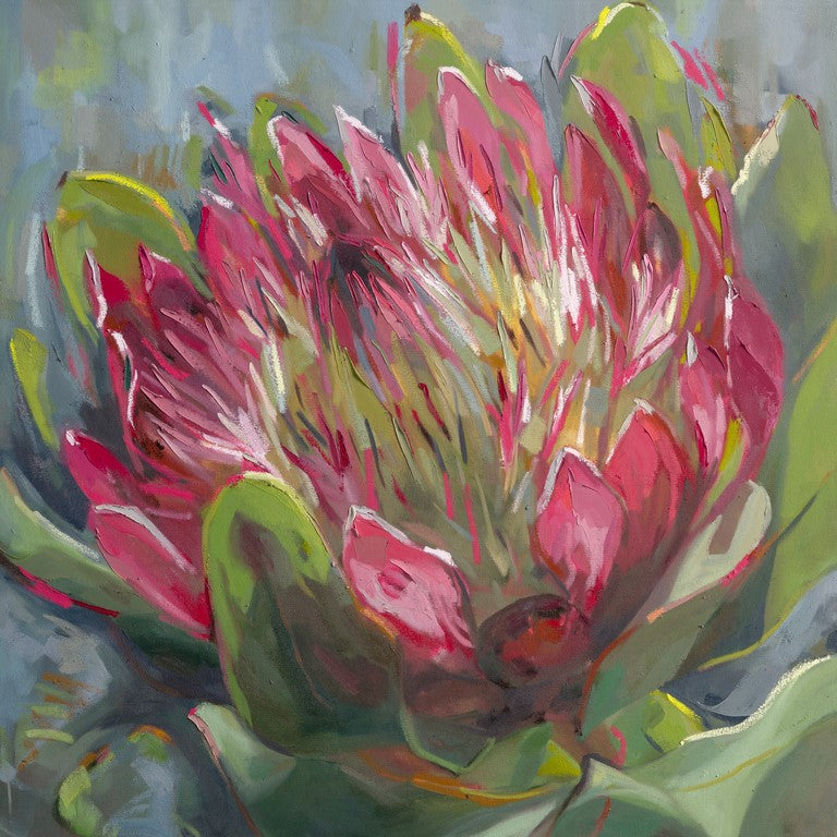 This pink protea (Protea eximia) is really one of my favorites to paint. There's hot pinks, gorgeous greens and delicious teals, offset with soft greens, greys and yellow ochres.