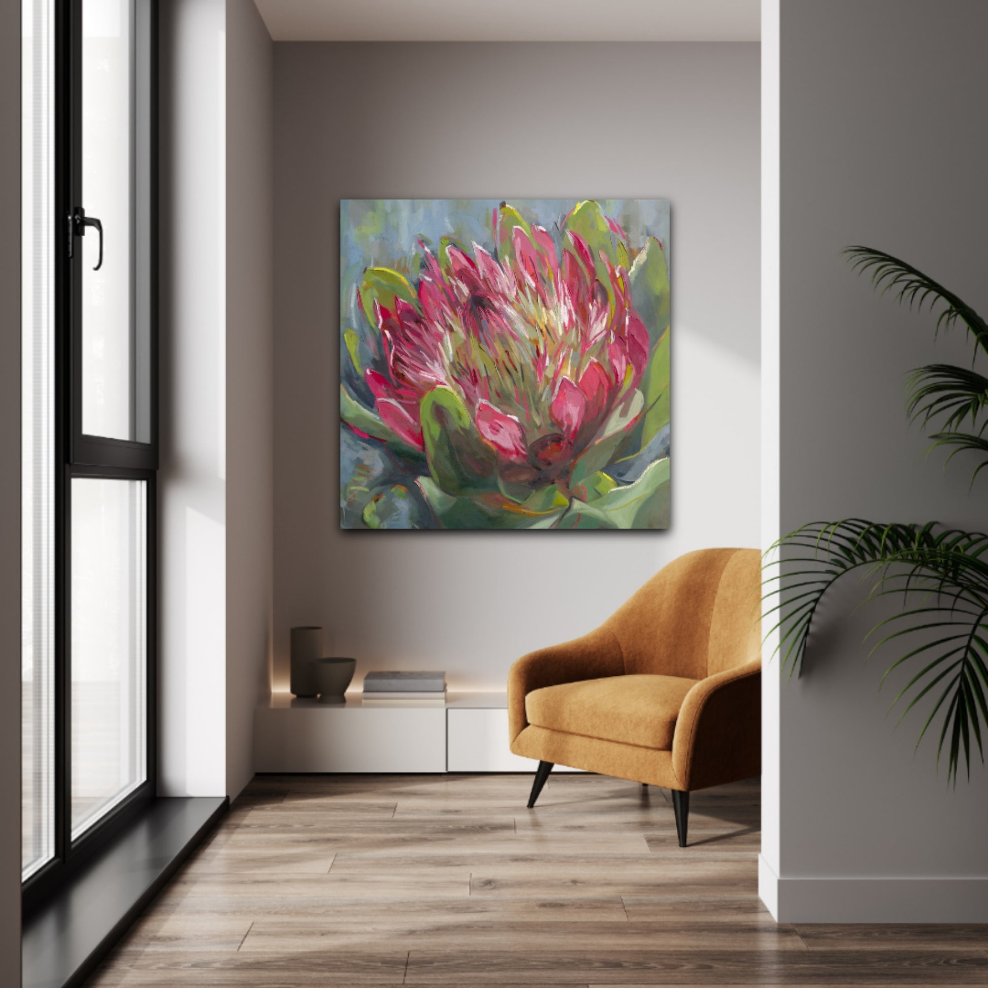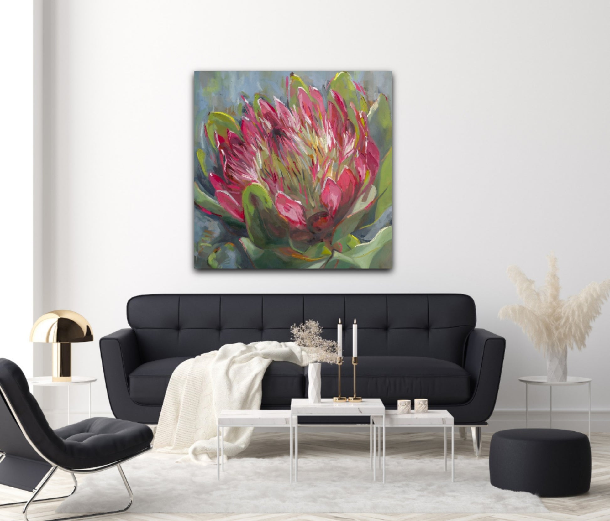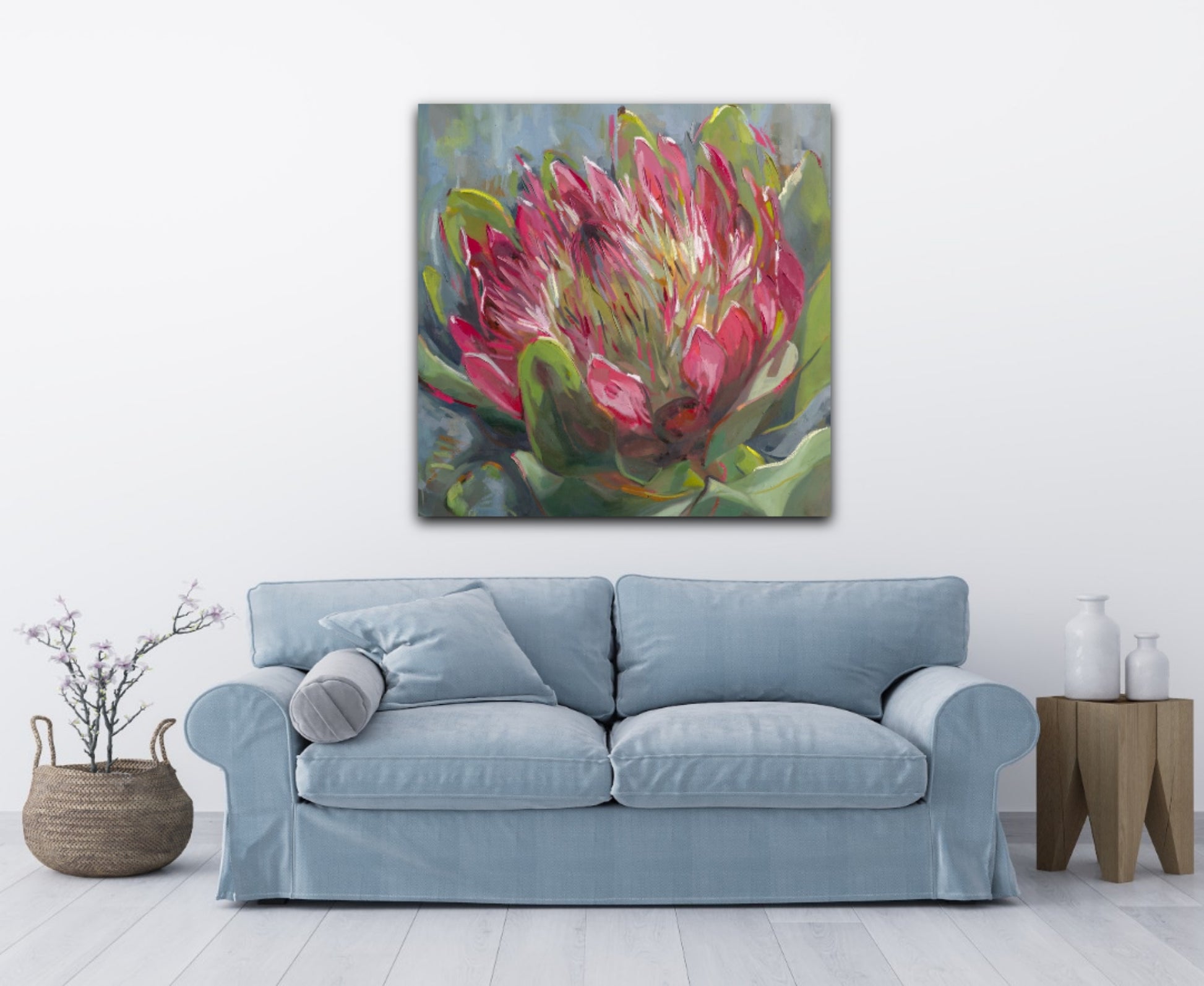 This pink protea (Protea eximia) is really one of my favorites to paint. There's hot pinks, gorgeous greens and delicious teals, offset with soft greens, greys and yellow ochres.