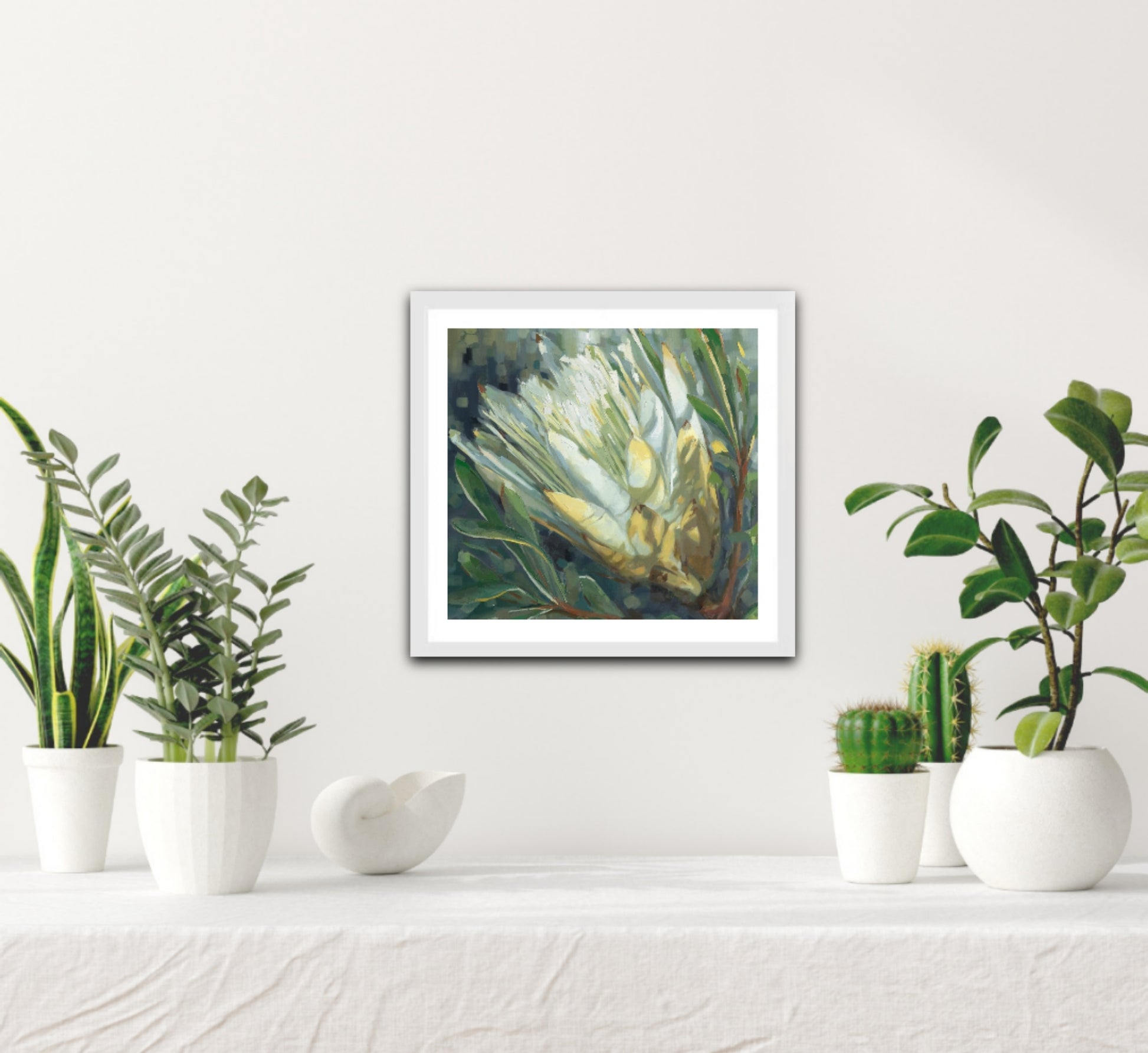 This specialised artist print is a reproduction of an original oil painting of South Africa’s indigenous flora. The original sold painting is much larger in scale. Choose between MEDIUM, LARGE or EXTRA-LARGE. Each print is part of a limited edition.