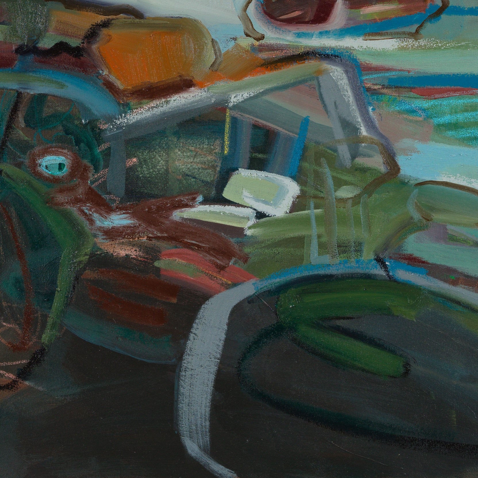 mixed media and oil on stretched canvas